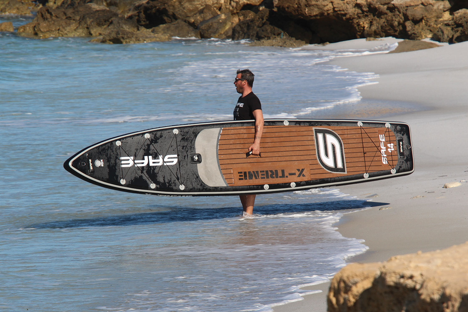 X-Treme 14 ‚ist das aufblasbare Sup, das entwickelt wurde, um lange Strecken zurückzulegen und lustige Abenteuer zu erleben. Es ist eine robuste Stütze, die Stößen mit Steinen, Baumstämmen oder allem anderen, dem Sie während Ihres Abenteuers begegnen können, standhält. Diese Sup fließt schnell und ohne Schwierigkeiten im Wasser und ermöglicht Ihnen so bequem lange Strecken zurückzulegen; Außerdem ist es außergewöhnlich stabil, so dass es möglich ist, viel Ausrüstung und Rucksäcke in Bug und Heck zu verladen. Die Stahlringe sind an wichtigen Punkten entlang der Kante positioniert, damit Sie die gesamte Ausrüstung, Angelstützen und mehr anbringen können. Das Deckpad dient auch als bequeme Schlafplattform und ist so konzipiert, dass es beim Campen für die Nacht einen Biwaksack unterbringt. Griffe an der Vorder- und Rückseite erleichtern das Tragen in und aus dem Wasser.