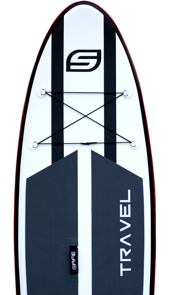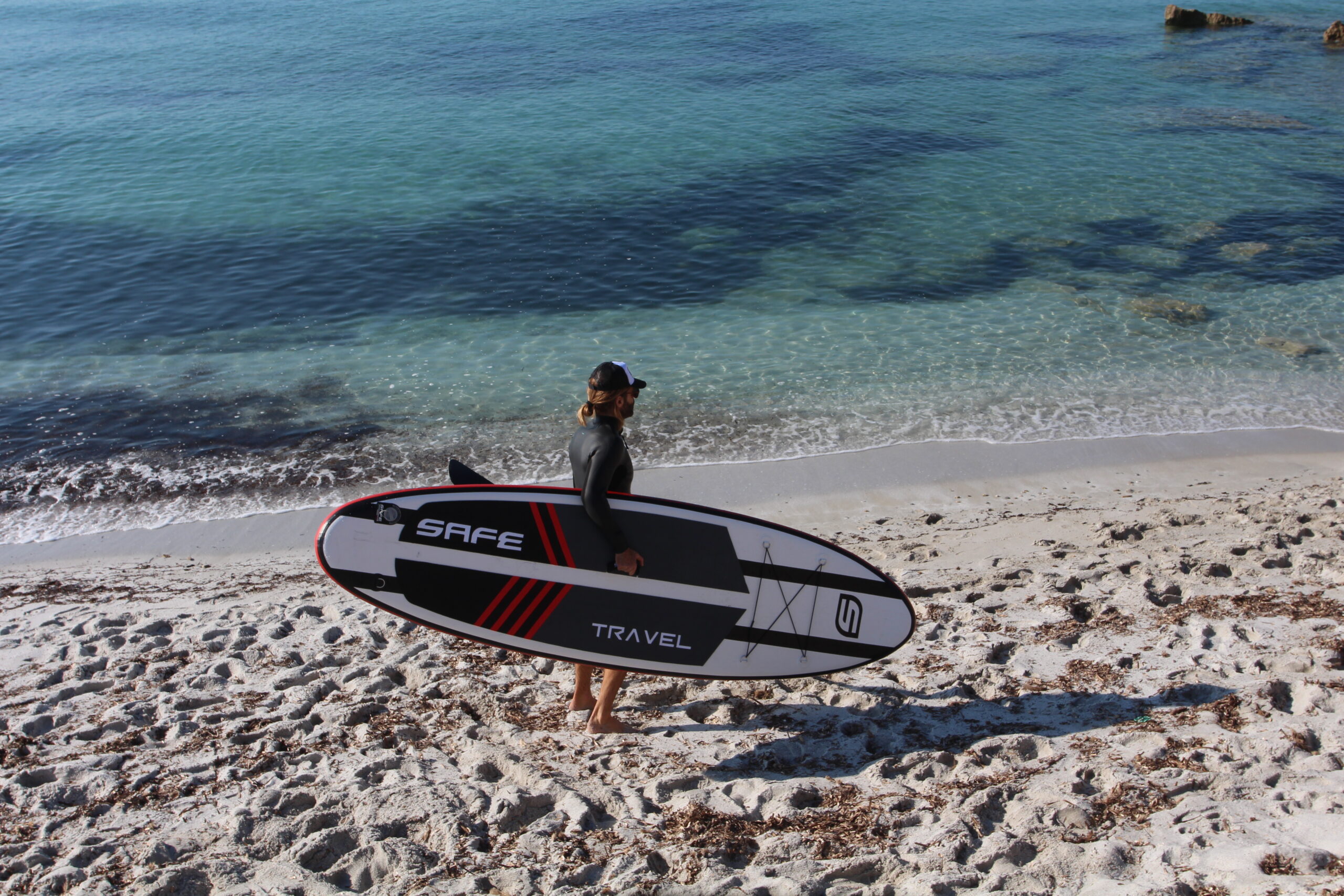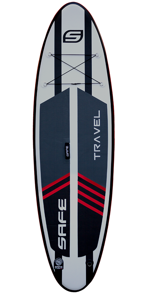 Travel 9’6 ’’ is the ultimate inflatable travel sup. Itis asup of standard dimensions that folds in half greatly reducing its bulk when traveling and stowage. We have designed a sup easy to transport without compromising the performance qualities: it is rigid and resistant like all SAFE supers. This stand up paddle is extremely innovative and offers unprecedented comfort. With Travel 9’6 ’’ it is easy to take long journeys, get on and off the train, from the plane, by bike or on foot. Travel 9’6 ’’ is a sup of standard size that after being deflated and folded occupies half the bulk of a traditional inflatable board. The result is a table that always keeps its shape when it is inflated, but is reduced to extremely small dimensions when it is deflated