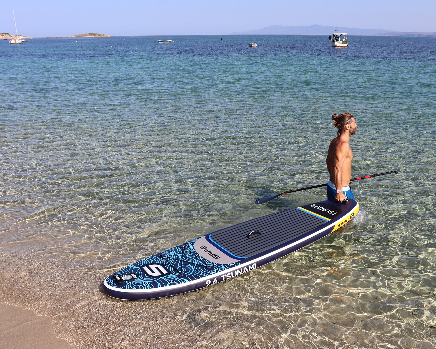 The TSUNAMI 9’6” Inflatable SUP excels particularly in its maneuverability, making it the ideal travel companion for stand-up paddle enthusiasts. With a synergistic approach between innovative design and high-quality materials, this SUP represents the epitome of technical performance in the world of inflatable water sports.