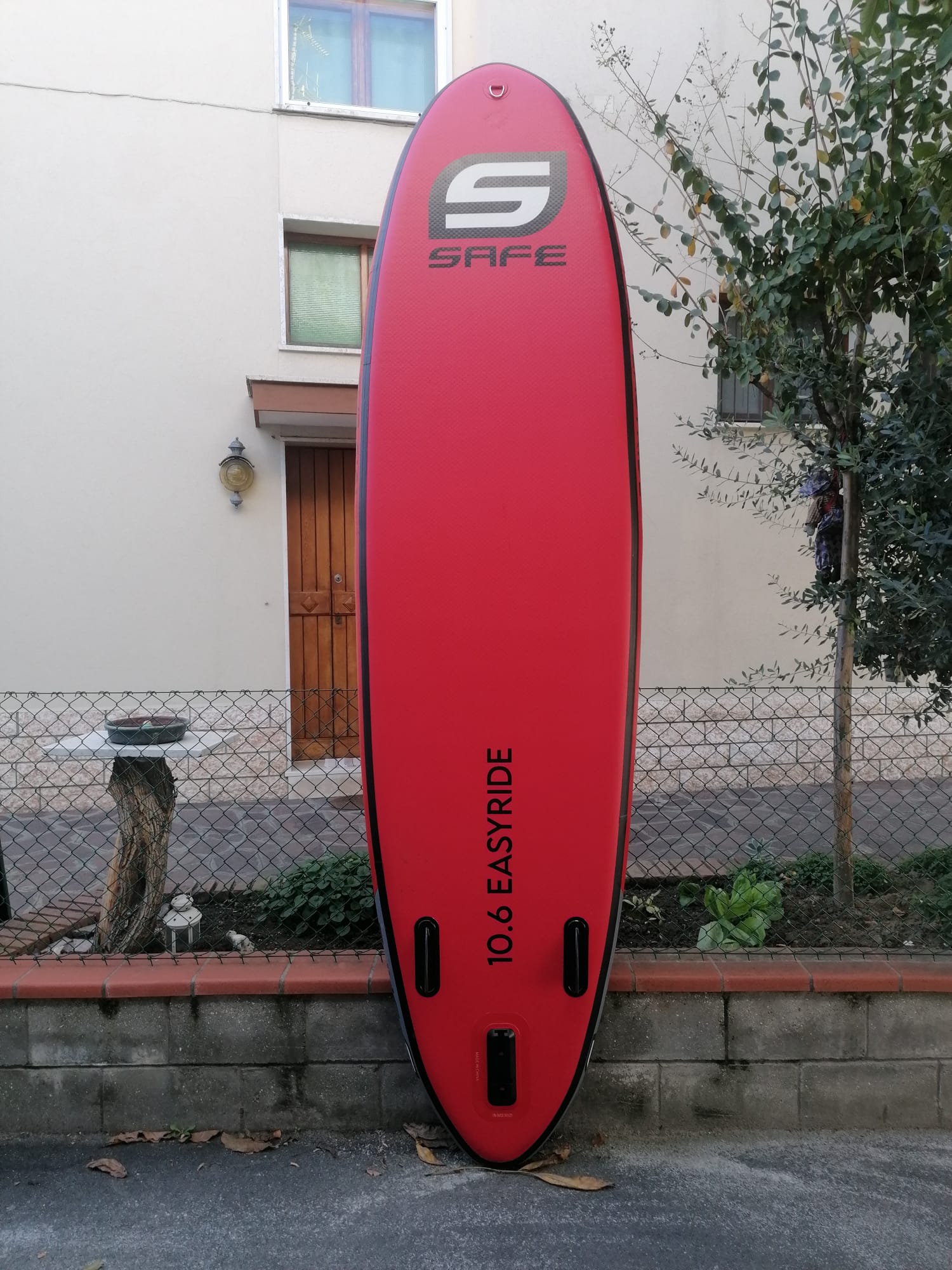 The sup includes a backpack , a repair kit, a double flow pump for 1.8 + 1.8L inflation, max. 26psi pressure with integrated pressure gauge, a central fin with removable and an alluminum paddle.