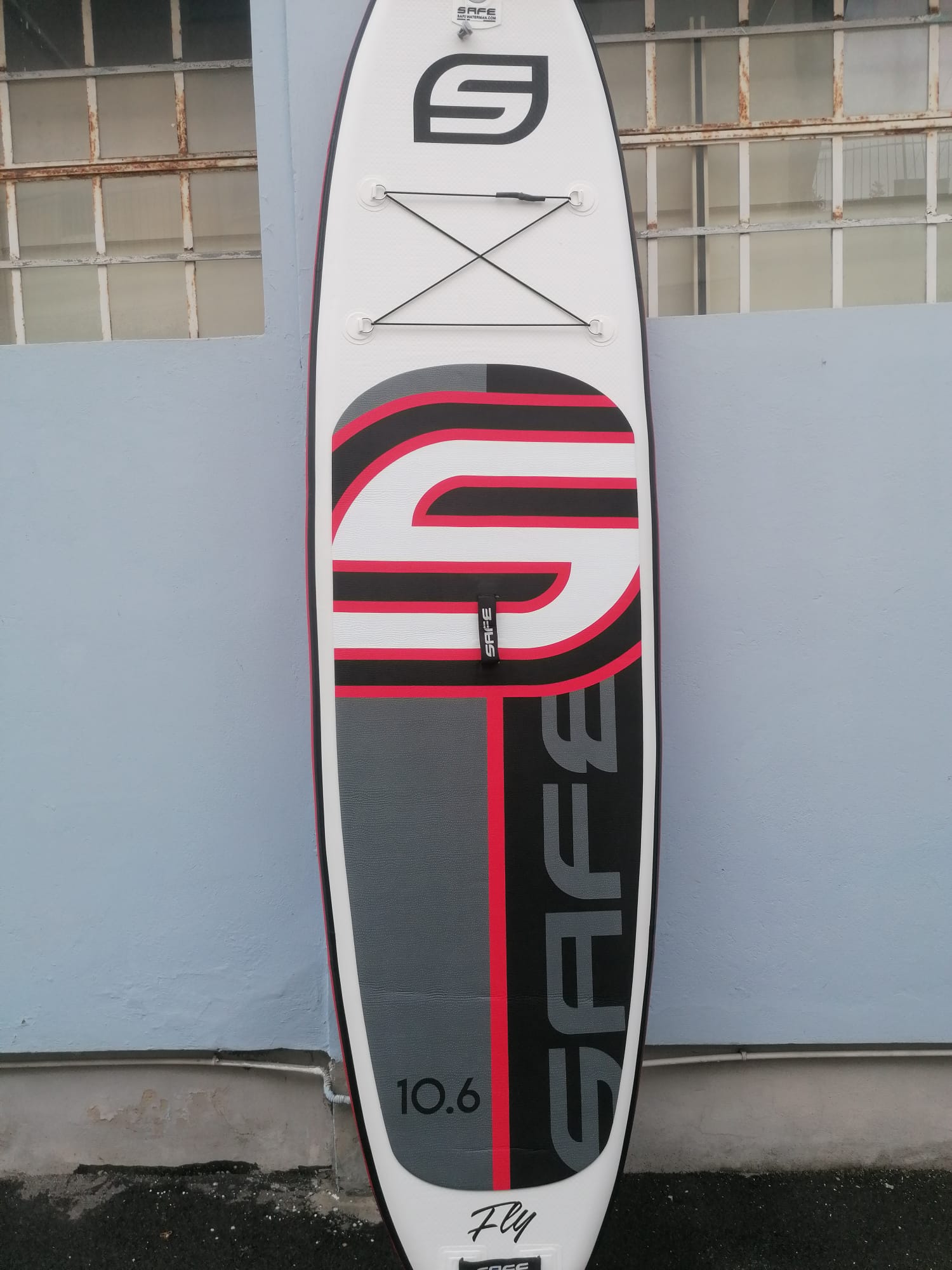 The sup includes a backpack with SAFE logo, a repair kit, a double flow SAFE pump for 1.8 + 1.8L inflation, max. 26psi pressure with integrated pressure gauge, a central fin with removable SAFE logo.
