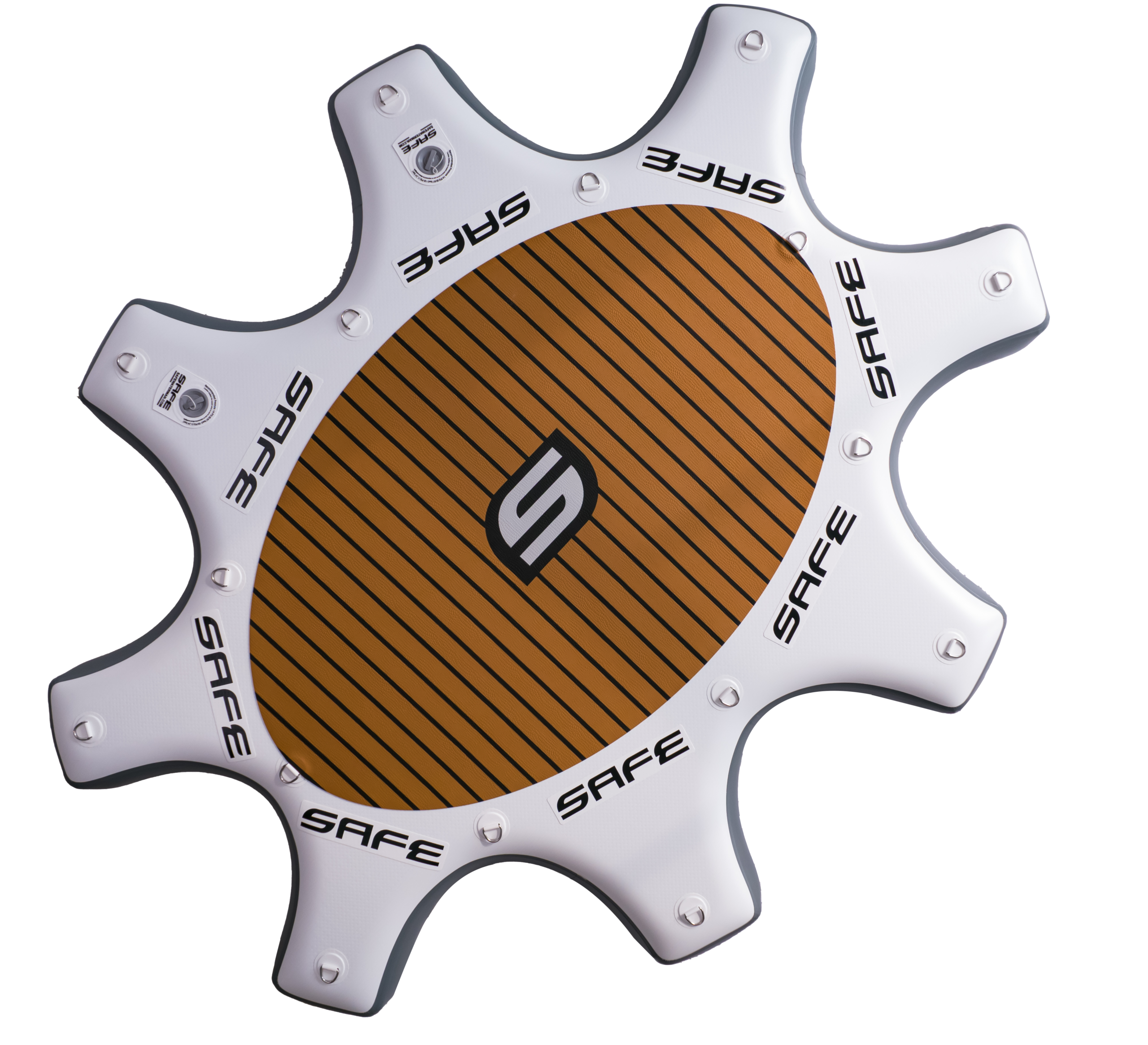 The Star Fit is designed to create a stable base for each school of SUP, fitness center and yoga, hotels or indoor / outdoor pools. This platform allows you to hook up 8 sup, through the eyelets connection positioned along the border and offering a safe anchorage. It ‘was designed to allow the anchoring of all types and sizes of stand up paddle, its thickness of 20 cm makes it stable and durable. the bridge located in the center has a large area covered by the anti slip grip, making it safe.