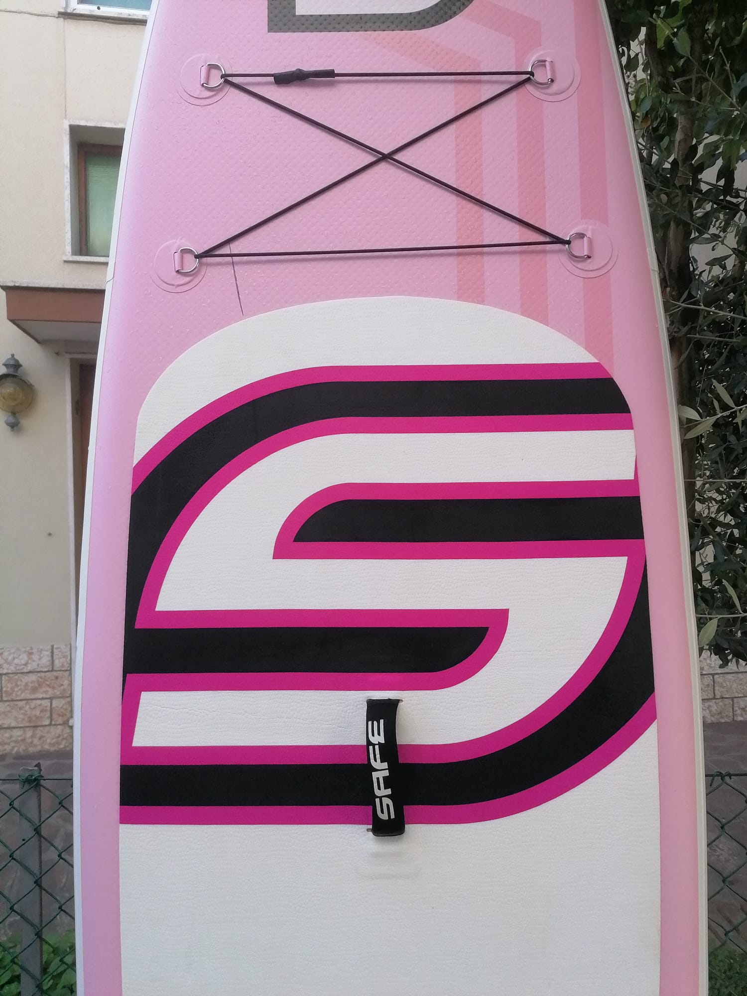 The sup includes a backpack with SAFE logo, a repair kit, a double flow SAFE pump for 1.8 + 1.8L inflation, max. 26psi pressure with integrated pressure gauge, a central fin with removable SAFE logo.