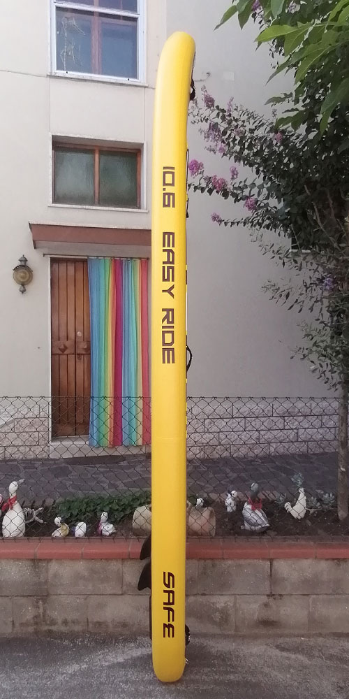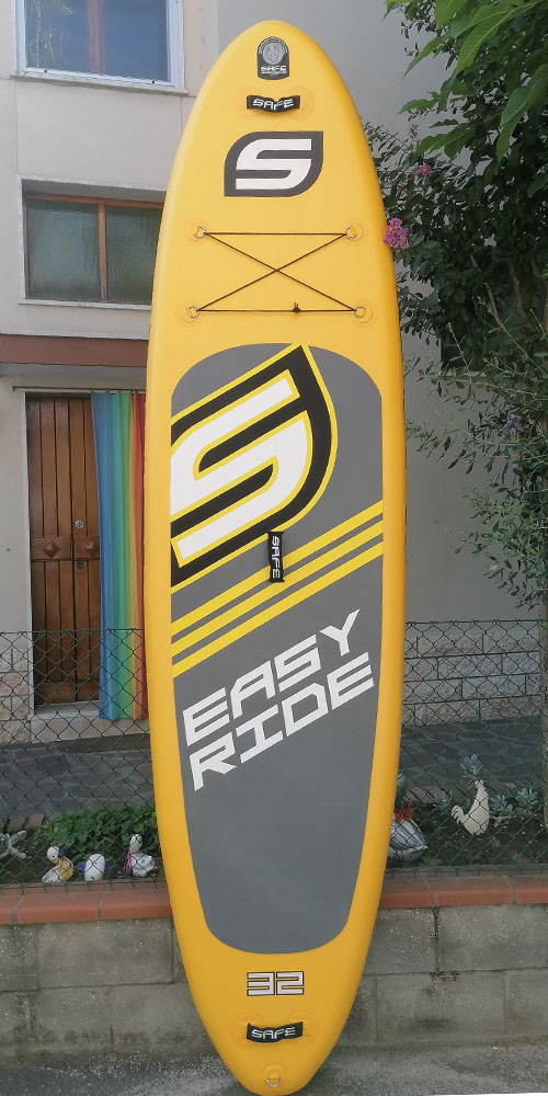 The sup includes a backpack with SAFE logo, a repair kit, a double flow SAFE pump for 1.8 + 1.8L inflation, max. 26psi pressure with integrated pressure gauge, a central fin with removable SAFE logo.
