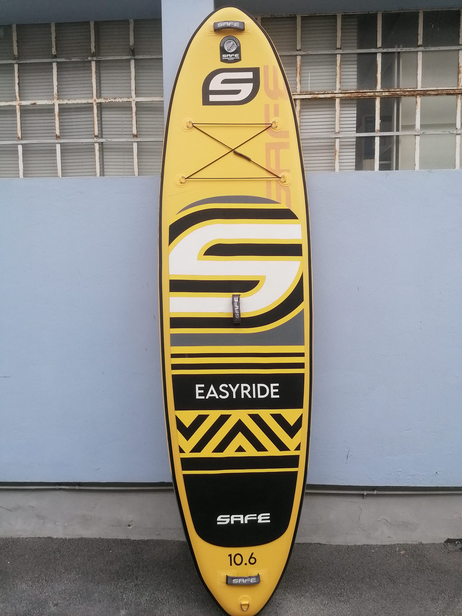 The sup includes a backpack with SAFE logo, a repair kit, a double flow SAFE pump for 1.8 + 1.8L inflation, max. 26psi pressure with integrated pressure gauge, a central fin with removable.