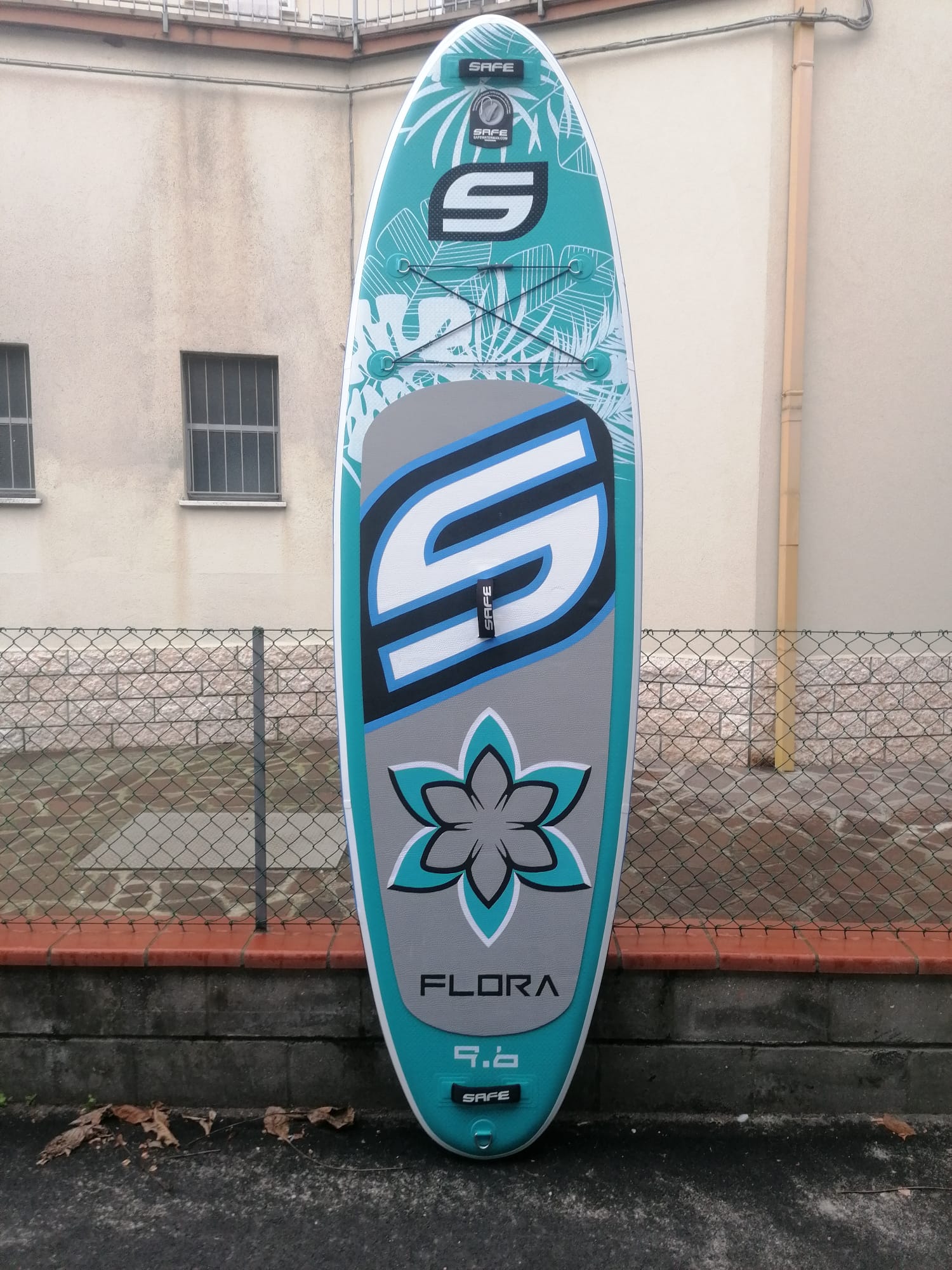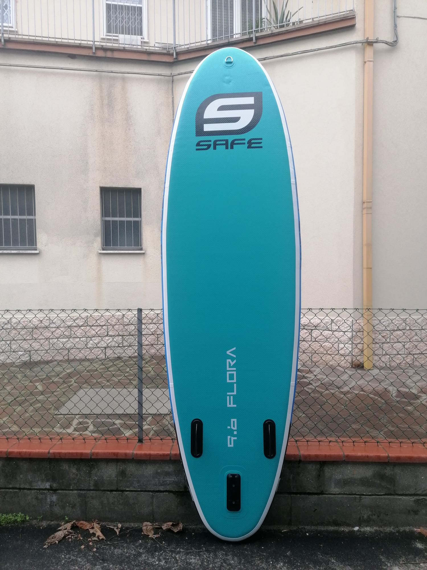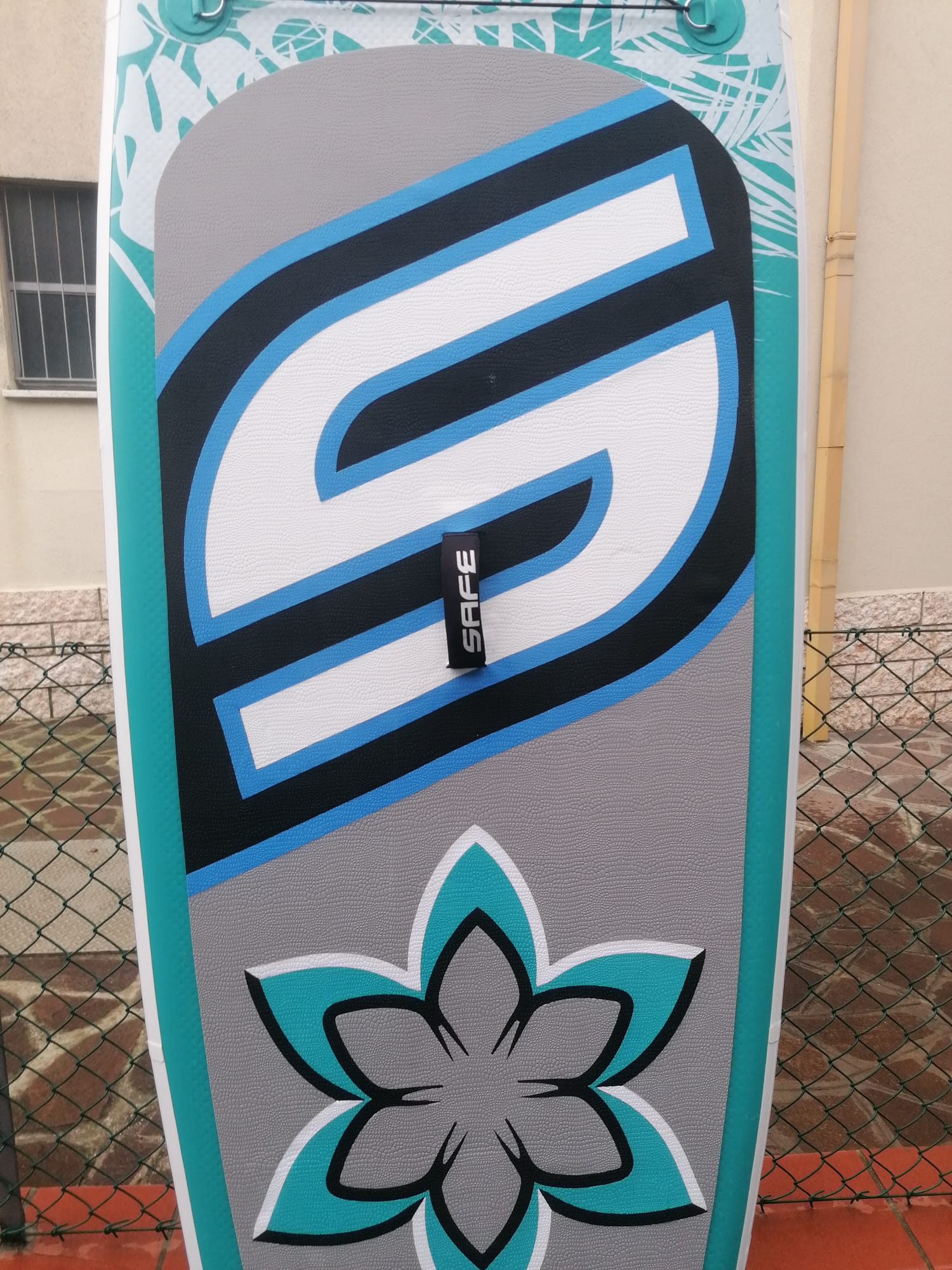 The sup includes a backpack , a repair kit, a double flow pump for 1.8 + 1.8L inflation, max. 26psi pressure with integrated pressure gauge, a central fin with removable SAFE logo and alluminium paddle.