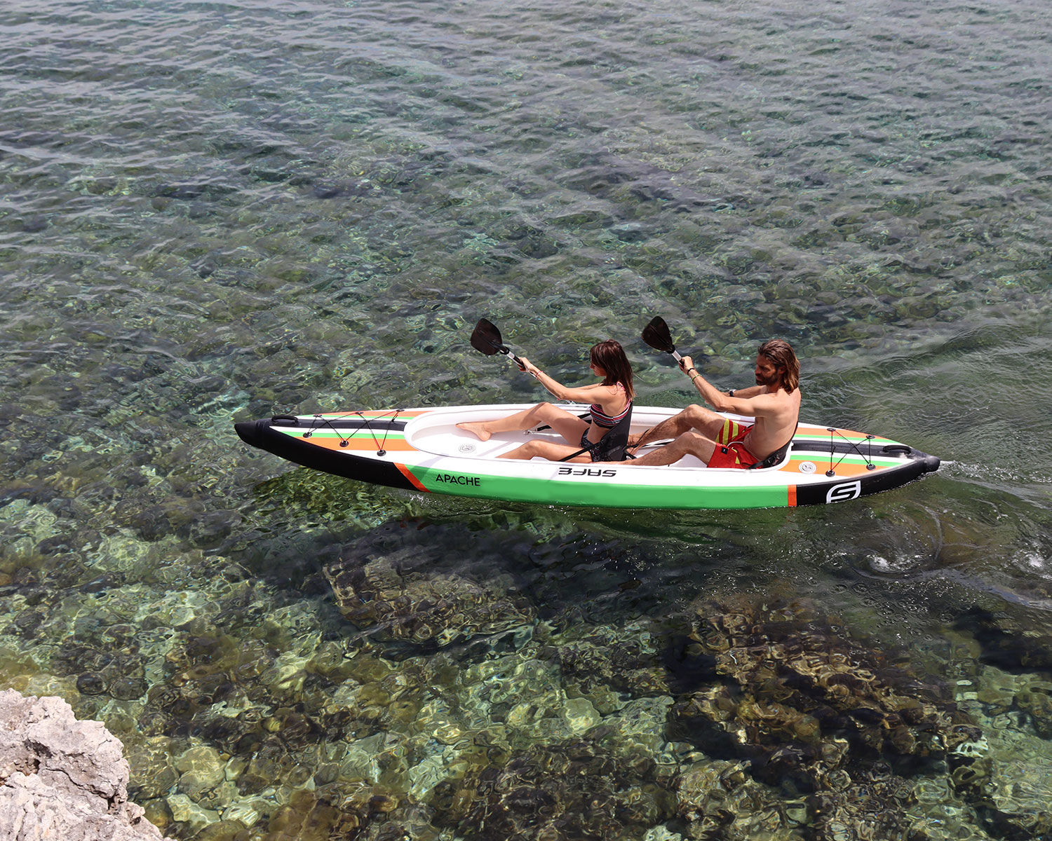 Il nostri kayak gonfiabili realizzati interamente con tecnologia Drop-Stitch e caratterizzati da un design decisamente sportivo, sono veloci sull’acqua, ideali per percorrere divertendosi ogni tipo di percorso, su fiumi, laghi e tutti gli specchi d’acqua.